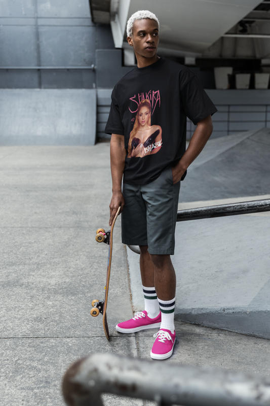 Camiseta oversize oficial do Fã-Clube Shakira Brasil – Coleção 2025, desenvolvida com arte original, exclusiva e autêntica, com uma pegada moderna e urbana. A estampa simboliza a conexão do público brasileiro com a artista e celebra as campanhas e mobilizações realizadas pelo fã-clube ao longo de 2025.