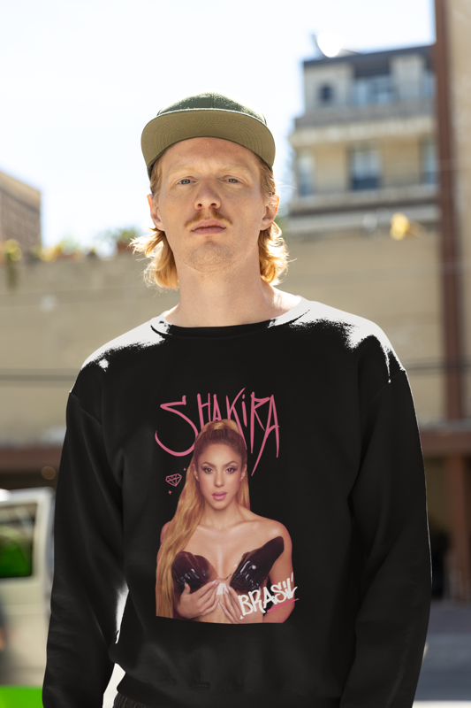 Moletom Oficial do Fã-Clube Shakira Brasil – Coleção 2025, desenvolvido com arte original, exclusiva e autêntica, com uma pegada moderna e urbana. A estampa simboliza a conexão do público brasileiro com a artista e celebra as campanhas e mobilizações realizadas pelo fã-clube ao longo de 2025.
