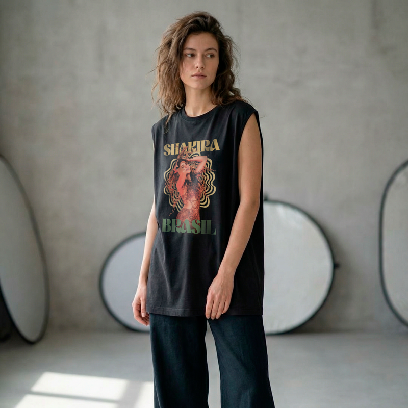 Com design marcante e cheio de movimento, a arte representa a força da artista, a união do público e a vibração única de quando Shakira está no Brasil. Mais do que uma camiseta, é uma peça que expressa pertencimento e celebra a alcateia mais fiel da loba.